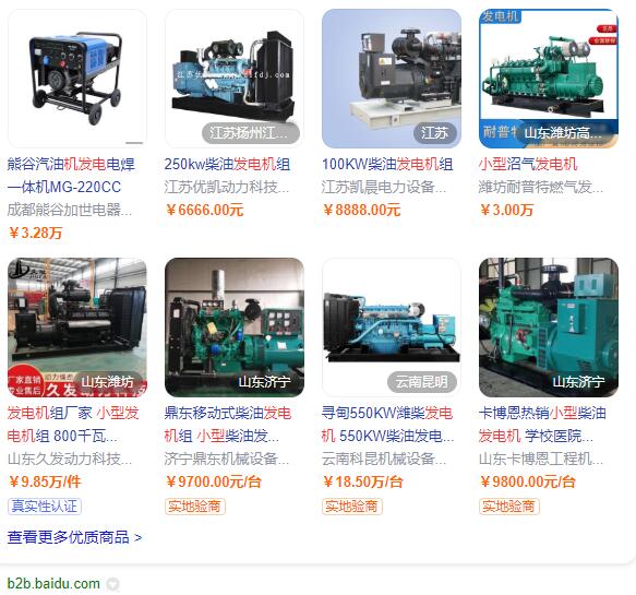 (百度愛采購搜索得到小型發電機價格)