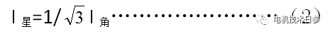 低電流關系。星形連接電流小于角形連接電流,關系如公式(2)所示,但相電流不變。