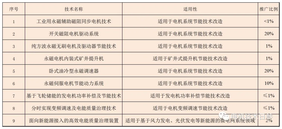 9月24日,中華人民共和國工業和信息化部官網發布了2021年國家工業節能技術推薦目錄、“能效之星”設備產品目錄和國家通信行業節能技術產品推薦目錄的公示內容。其中,國家工業節能技術推薦目錄項目69項,電機相關項目9項,如下圖所示。