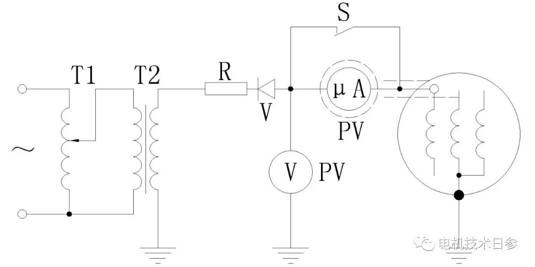 PV——高壓電壓表,可以選擇靜電電壓表,也可以通過串聯電阻分壓與低壓電壓表相連。