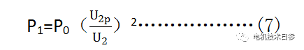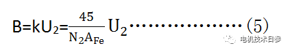 若鐵芯軛部磁密等于10kGs時 ,U2與計算值不等,實測比損耗P1按式(7)計算。